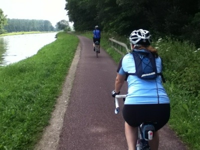 Pendant ce temps, je courrais les boutiques vélos à la recherche d’un plateau du milieu; le mien souffrait d’un dent crochue. Aucune des boutiques n’avait de solution à mon problème. À la cinquième boutique, je fais connaissance avec Julie, la mécano aux mains huileuses. Pour elle, le manque de pièces ne causait pas problème; avec ses pinces de plomberie, la dent récalcitrante a retrouvé son sourire. 😉